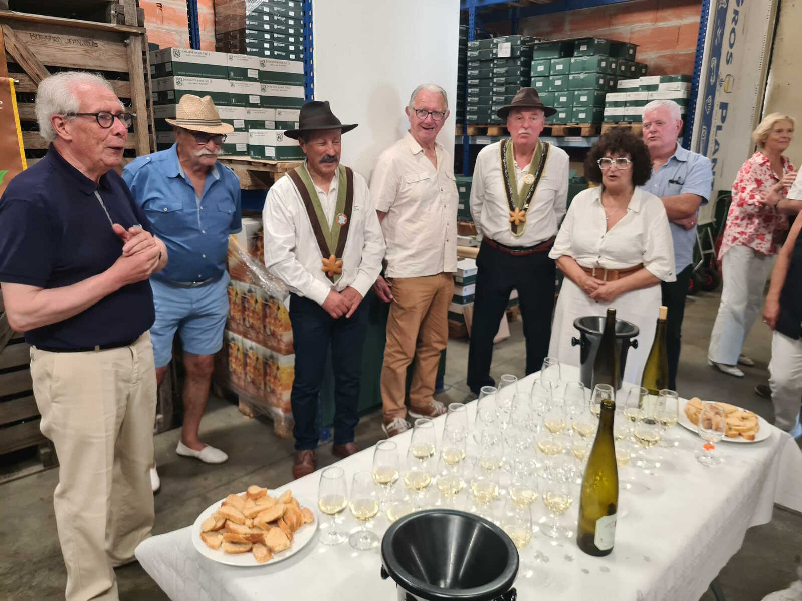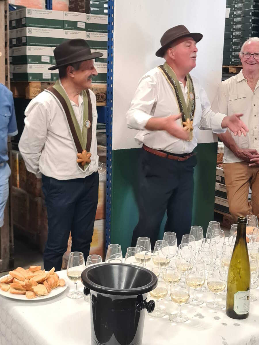Un repas en toute simplicité, qui a permis aux collègues de la région des Pays de la Loire de se rencontrer,était accompagné des vins du domaine, et ce déjeuner a été animé bénévolement par 2 sonneurs qui ont interprété des airs celtiques à la bombarde et à la cornemuse. Le Président leur a remis un plateau de la Fédération ainsi qu’au vigneron qui nous a mis gracieusement une salle à disposition.